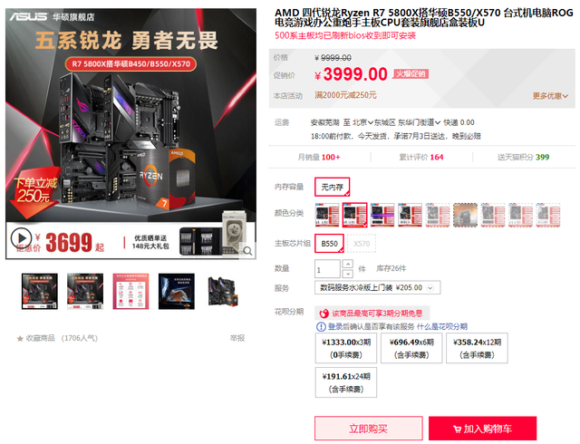 另外天猫商城还有华硕B550重炮手WIFI主板搭R7 5800X处理器套包,券后到手价3749元,另享3期免息福利,入手良机不容错过。