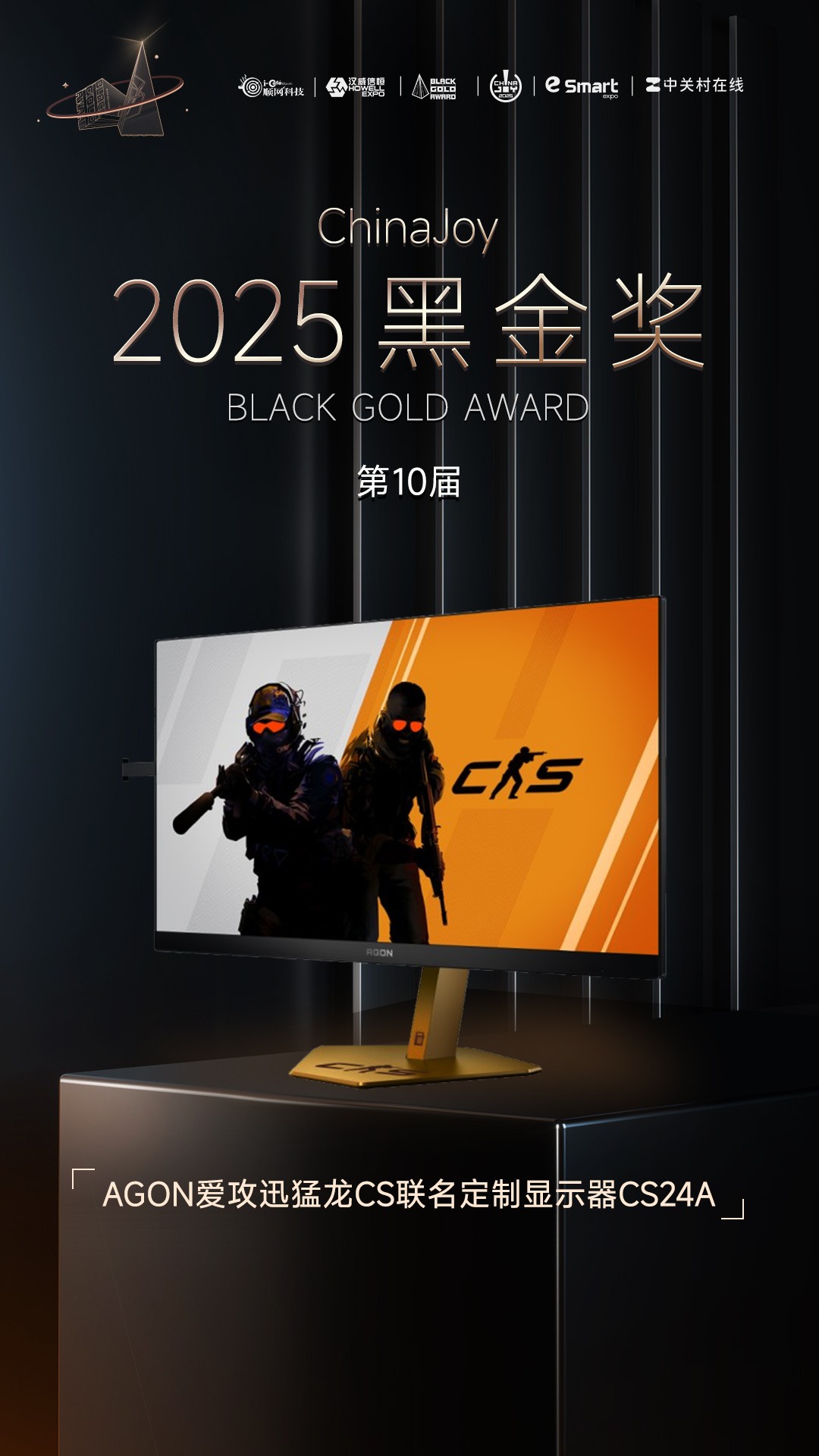【ZOL中关村在线原创新闻】2025年8月2日,第十届ChinaJoy黑金奖(Black Gold AWARD)正式揭晓。AGON品牌年度旗舰显示器AGON爱攻迅猛龙CS联名定制显示器CS24A,凭借着优秀的设计、极致的性能,荣获2025年度黑金奖。