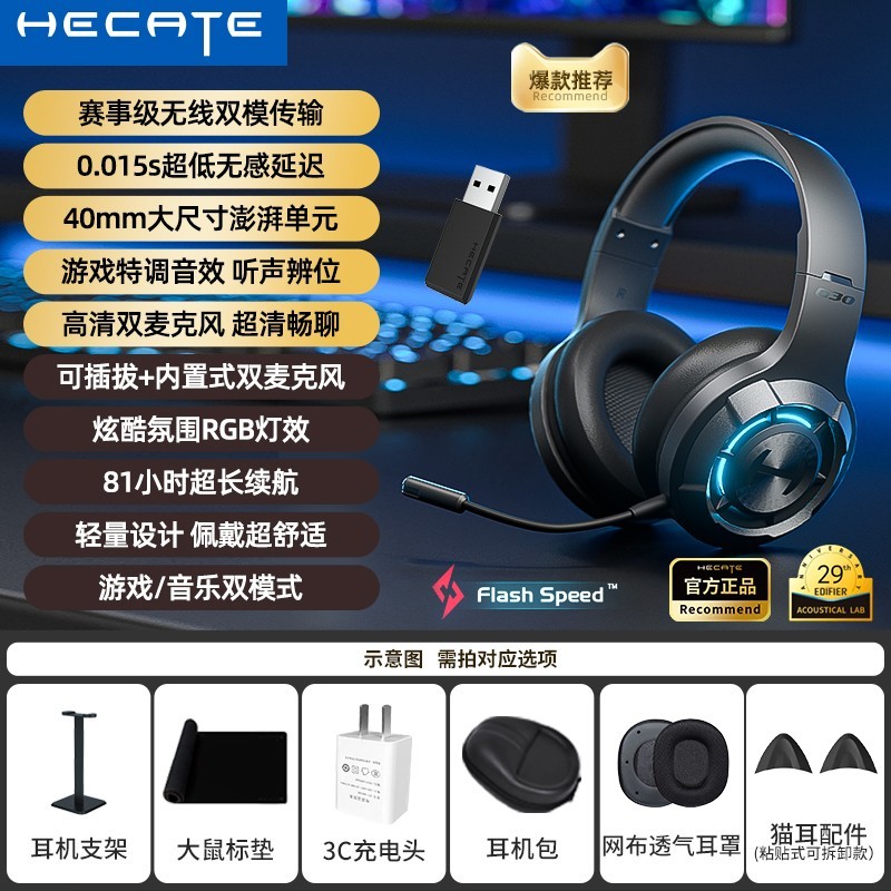 漫步者HECATE G30S雷霆版2.4G无线蓝牙双模游戏耳机是游戏爱好者的优质选择。它采用2.4G无线蓝牙双模,能让你在不同设备间轻松切换使用。耳机颜色为黑色,官方标配套餐提供了所需的基本配置。