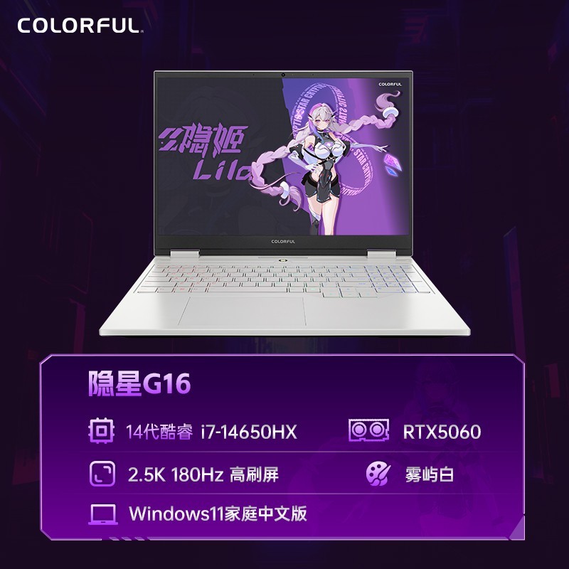 七彩虹隐星G16 Pro 2025款游戏笔记本电脑搭载全新14代酷睿i7-14650HX处理器和RTX5070/5070Ti独立显卡,性能强劲流畅,轻松应对大型游戏与多任务处理,配备16英寸2.5K分辨率屏幕,支持180Hz高刷新率与雾面防眩光设计,带来沉浸式视觉体验,机身配色清新雅致的雾屿白,兼顾颜值与便携性,配置16GB内存+1TB高速固态硬盘,满足日常办公、设计创作与电竞娱乐多场景需求,现天猫商城官方标配版限时促销价仅需5839.2元,原价10099元,立省1459.8元,还可叠加国家补贴享8折优惠,性价比极高,喜欢的朋友不容错过。