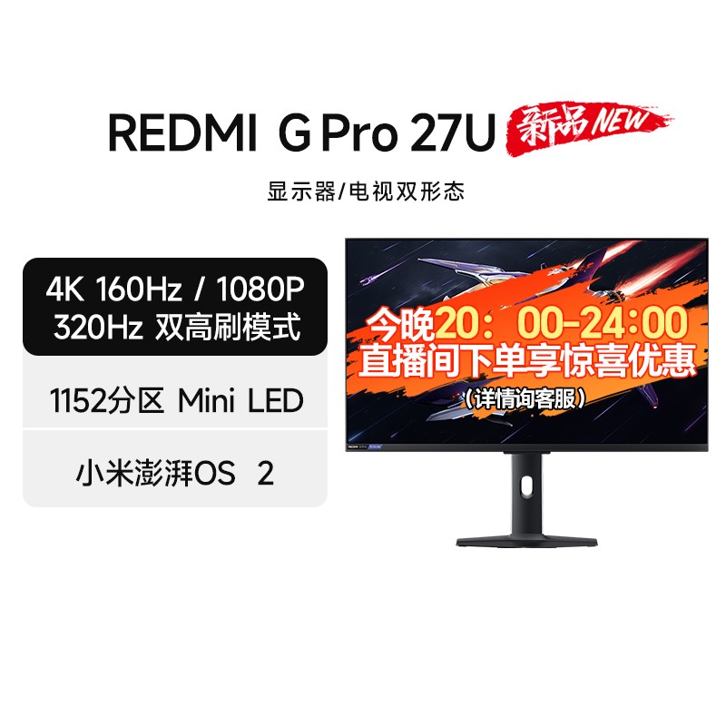 红米小米REDMI电竞显示器G Pro 27U是一款非常出色的27英寸游戏显示器。它采用高刷双模MiniLED技术,能为玩家带来惊艳的视觉体验。无论是在游戏中快速切换画面,还是欣赏高清影视内容,都能表现得极为出色。