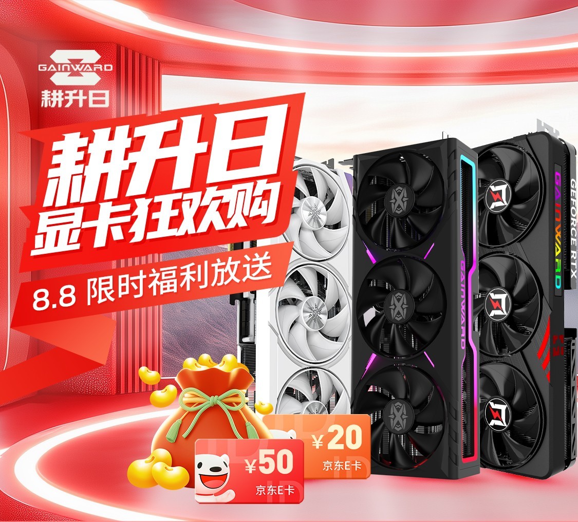 耕升京东自营旗舰店优惠活动限时开启,多款性能卓越的显卡超值特惠!无论你是想在3A大作中特效全开的游戏玩家,还是渴望提高效率的内容创作者,总有一款显卡能够助你一臂之力。8月8日0点起至8月17日限时进行,精彩福利不容错过!