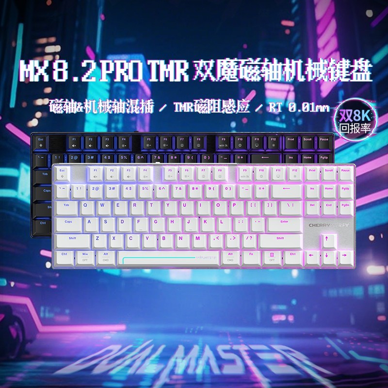 CHERRY MX8.2 PRO TMR无线双魔磁轴电竞机械键盘来啦!它采用魔晶磁轴,拥有8K性能,内置8000mAh电池,能为电竞爱好者带来出色的使用体验。