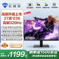 机械师27英寸2K高清电竞显示器,搭载原生320Hz高刷新率与1ms疾速响应时间,采用Fast IPS技术带来更流畅顺滑的游戏体验,支持HDR400显示技术与低蓝光模式,有效降低视觉疲劳,400nit高亮度呈现更清晰明亮的画面细节,无论是大型游戏还是高清影音都能轻松应对,助力玩家制胜每一刻。