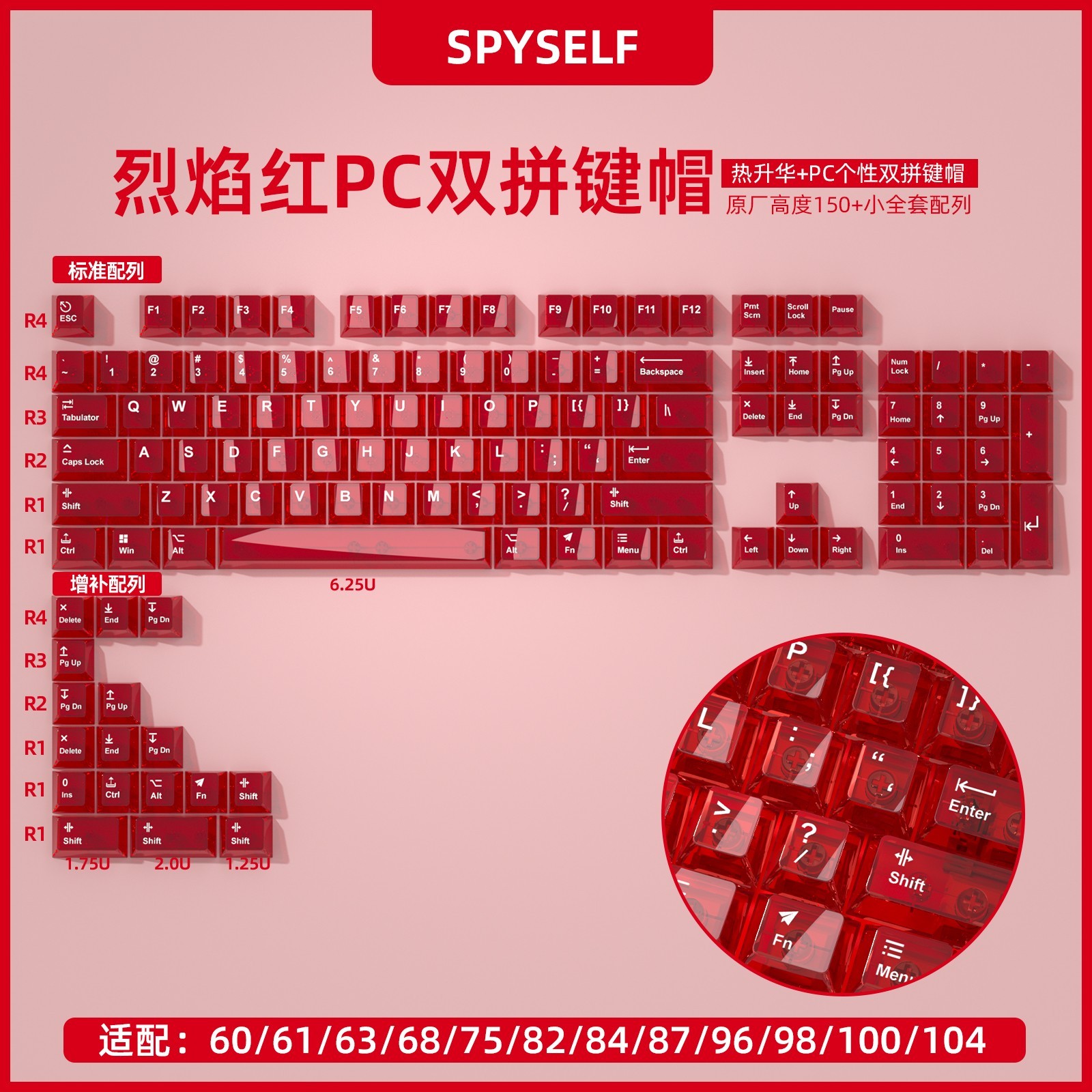 密探PC原厂透明透光键帽PBT热升华适配60、68、75、100以及wooting美加狮。