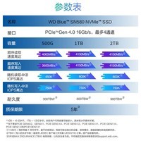 西部数据(WD)大容量SSD固态硬盘 m.2 nvme高速笔记本台式AI电脑配件PS5 3A游戏高性能pcie4.0 西数sn580 850x 办公游戏推荐SN580 蓝盘 1TB