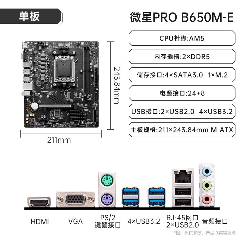 AMD锐龙9600X/9700X板U套装,搭配B650M/B850主板,支持高性能处理器,轻松应对多任务处理和大型游戏,主板品牌可选华硕、微星、技嘉,稳定耐用,扩展性强,适配多种使用场景。当前促销型号为9600X散片套餐,主板芯片组为其他类型,不含内存,颜色分类为微星PRO B650M-E。