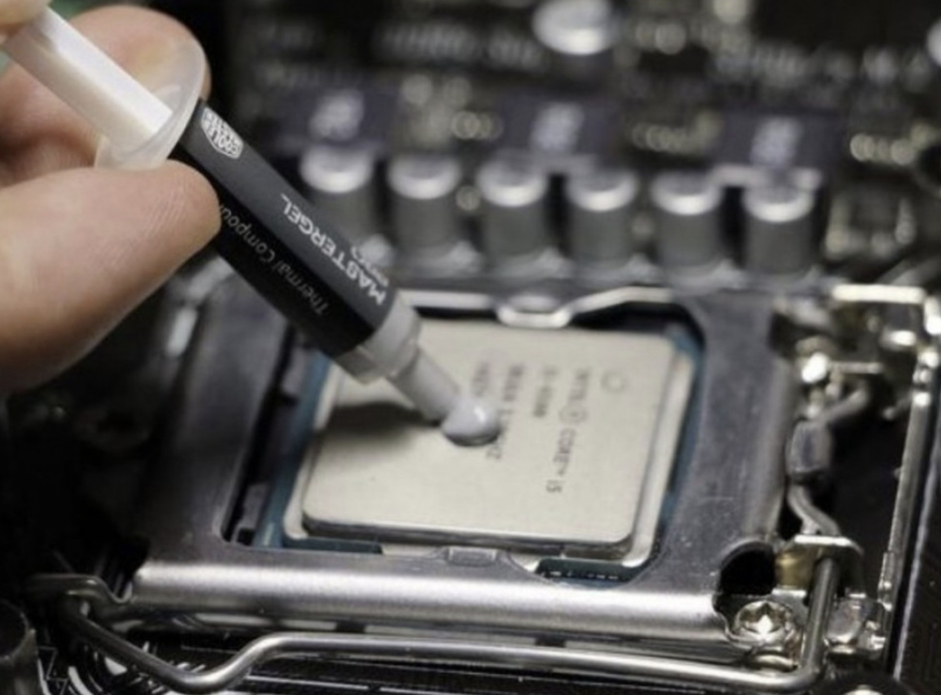 点涂:在CPU顶盖挤5粒左右大小硅脂。