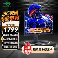 泰坦军团推出一款超厉害的电竞显示器——P275MS+。它的屏幕尺寸为27英寸,采用了1152分区MiniLED技术,分辨率达到2K。刷新率更是高达320Hz,还具备1ms的响应时间,这对电竞玩家来说是非常出色的参数,可以带来极为流畅的游戏画面。同时,它还拥有DyDs技术以及HDR1000,在显示效果上能够提供更丰富的色彩和高对比度,让画面更加逼真。而且它支持旋转升降,能够满足不同用户的使用需求。