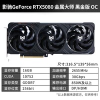 影驰GeForce RTX 5080 DLSS 4 50系列新品显卡 电竞游戏设计图形渲染AI智能深度学习台式机电脑显卡 RTX 5080 金属大师黑金版 OC
