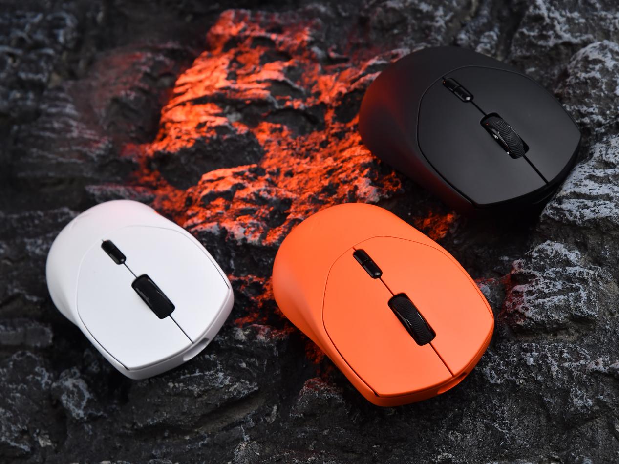 雷柏VT1系列的外观设计延续了VT系列简洁、专业的风格。VT1和VT1MAX,均拥有“焰影橙”、“星空黑”、“皎月白”共三种配色,其中VT1的焰影橙,以及VT1 MAX的三种配色采用更跟手的亲肤防滑涂层工艺,VT1的黑白配色则是更干爽的类肤磨砂工艺表面。