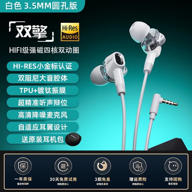 漫步者双擎游戏耳机有线入耳式设计专为电脑电竞打造,采用3.5mm圆孔接口,兼容性强,佩戴舒适稳固,尤其适合长时间游戏使用。耳机搭载高品质单元,高音清澈通透,低音浑厚有力,带来沉浸式音效体验,助你在战场上先声夺人。