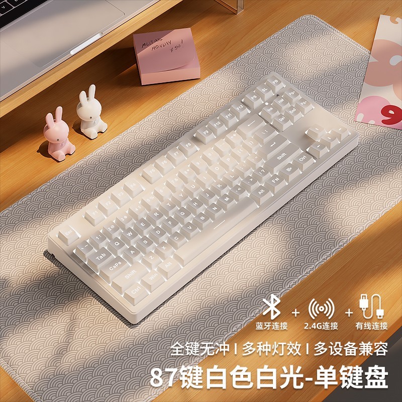 前行者 EWEADN 草莓小猫无线机械键盘蓝牙粉色可爱女生办公游戏专用,专为追求个性与实用兼具的女生设计,整体采用粉色草莓与小猫元素外观,萌趣可爱,轻松点缀你的桌面氛围。键盘为87键紧凑布局,搭配清脆青轴,打字游戏都畅快,支持无线蓝牙三模连接,使用灵活便捷。现在天猫商城促销火热进行中,参加立减29元活动,并可领取满119元减20元优惠券,叠加后最终仅需138.05元/件即可入手,喜欢的小伙伴千万不要错过!