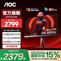 AOC 爱攻AG275UXM 27英寸4K 165HZ MiniLed电竞显示器1MS快速液晶HDMI2.1游戏电脑显示屏 【上新】AGON5Pro王者 AG275UXM