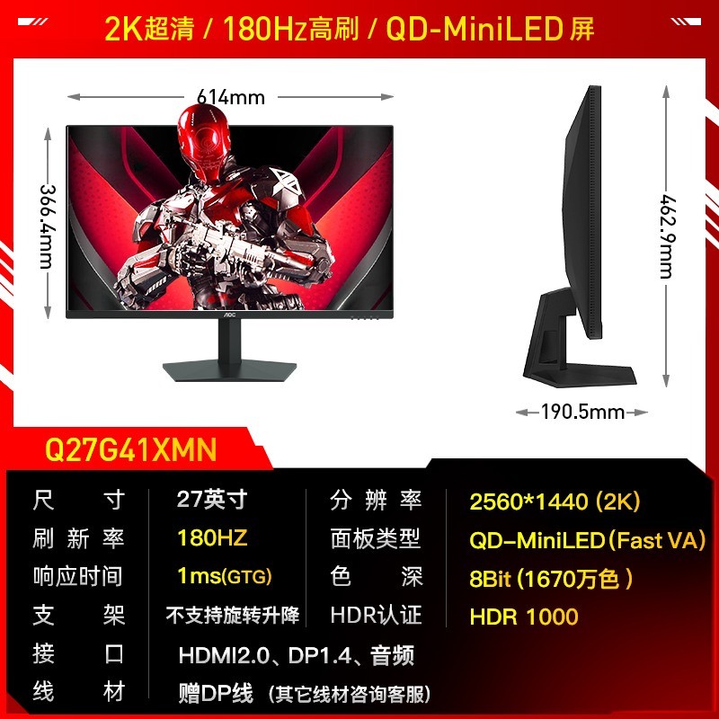 这款显示器具有诸多亮点。它是爱攻与保时捷联名系列,底座支架为金属材质,后壳和两侧有投射氛围灯,LightFX灯光系统能提供多种酷炫灯效,还内置高保真立体音响,声光同步,游戏和观影时仿佛身临其境。双侧有隐藏式耳麦挂架,机身有多处爱攻、保时捷经典元素点缀。其采用MiniLED全阵列直下式背光,含3456颗灯珠,1152分区独立背光控制,峰值亮度达1600nits。分辨率为3840×2160(4K超清),刷新率达144Hz,响应时间1ms(GTG),操作快感十足且走位顺畅。它通过DisplayHDR1400认证,明暗对比出色,色域为97%DCI - P3,DeltaE小于2,色彩准确生动。接口方面,有2个HDMI2.1满血接口,连接PS5、XBOX Series X可享4K@120Hz满血画质,还有90W Type - C接口,支持反向充电和视频输出等功能,多功能人体工学支架可进行多项调节。不过它也有劣势,存在安装问题和品控不佳的情况。如果你需要高性能、多用途的显示器,它是不错选择,但购买前要了解安装和品控信息。