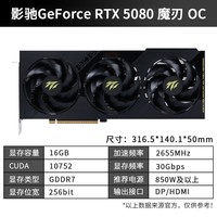 影驰GeForce RTX 5080 DLSS 4 50系列新品显卡 电竞游戏设计图形渲染deepseek AI 台式机电脑显卡 RTX 5080 魔刃OC