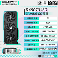 技嘉(GIGABYTE)AMD RX 9070 XT 16G显卡 魔鹰小雕 台式机电脑游戏DeepSeek智能AI学习绘图视频渲染 RX9070 GAMING OC 16G魔鹰