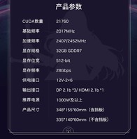 影驰GeForce RTX 5090 D 星曜 大将 DLSS 4 deepseek本地部署电脑深度学习AI运算人工智能游戏显卡 RTX5090D星曜LUNA OC 32G