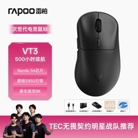 雷柏VT3二代双8K版中大手无线/有线双模游戏鼠标,采用轻量化设计,搭载原相3398引擎,拥有原生8K+8K回报率,鼠标为黑色外观。