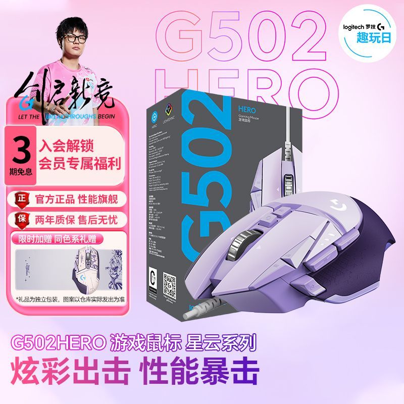 罗技Logitech G502 HERO星云系列有线鼠标全新上市限时特惠直降45.6元到手仅需190.4元参加拼多多百亿补贴还可叠加百亿消费券享新品好价这款彩色粉紫配色炫酷吸睛专为电竞玩家打造搭载HERO 25K传感器精准操控响应迅速吃鸡游戏轻松制胜支持宏编程功能可自定义按键满足多场景需求配备可调节配重系统自由调配手感适应不同握持习惯耐用微动设计确保长时间使用依然稳定流畅G502经典人体工学造型搭配星云灯效尽显个性与性能的完美结合原价236元现在入手立省超值不容错过