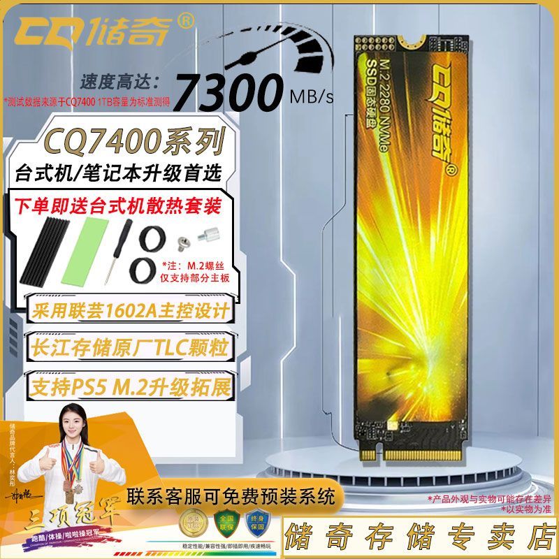 储奇CQ7400 NVMe PCIE4.0固态硬盘1TB采用长江存储高品质颗粒,专为PS5及台式机笔记本设计,读取速度高达3500MB/s,写入流畅稳定,大幅提升系统启动、游戏加载和文件传输效率,兼容性强,安装便捷,是升级设备存储的理想选择。
