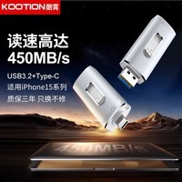 KOOTION 固态U盘USB3.2 Type-C 双接口手机电脑两用金属优盘创意高速U盘大容量iPhone 15/16 U盘 【256G】银色-固态双接口U盘