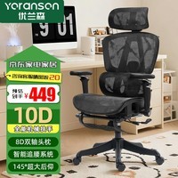 优兰森人体工学椅T606145°逍遥躺采用科学设计,贴合人体脊椎曲线,带来全方位支撑,久坐不累,办公休闲更舒适;配备10D多维调节扶手,可自由调节高度、角度和前后位置,适配不同使用场景;高强度尼龙脚底座稳固耐用,搭配360°静音万向轮,移动顺滑不伤地板;加配专属脚踏,解锁躺卧新姿势,轻松享受145°逍遥后仰时光。