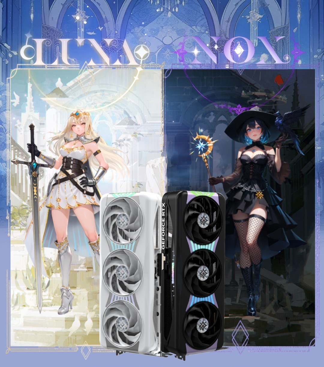 这是影驰主打高端设计和极致颜值的旗舰系列。拥有豪华的散热配置和最炫酷的RGB灯效,支持灯光同步。此外,还具备双BIOS切换等便捷功能。如果你追求顶级的视觉效果、出色的散热性能,并且喜欢个性化的RGB灯效,星曜系列是你的不二之选。NOX和LUNA主要在二次元主题和颜色搭配上有所区别。