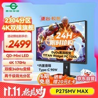 泰坦军团27英寸 2304分区 MiniLED 4K170Hz双模340Hz DyDs技术 HDR1400 Type-C 90W 电竞显示器P275MV MAX