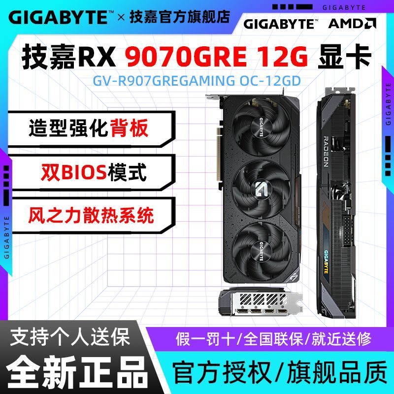 技嘉 RX 9070GRE 12G 魔鹰OC 三风扇游戏显卡,专为高性能玩家打造,搭载12GB大容量显存与高效能核心架构,轻松应对主流3A大作与高负载设计任务,三风扇散热系统大幅提升导热效率,确保长时间稳定运行不降频,支持光线追踪与智能超频技术,带来更流畅更真实的视觉体验。