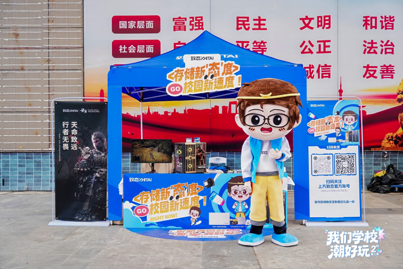 【ZOL中关村在线原创新闻】科技和校园的碰撞才是广州秋天的正确打开方式!10月21日,中关村在线#我们学校潮好玩#第二季,携手致态正式走进广州大学(大学城校区),此次致态现场为同学们展示固态硬盘、移动硬盘、存储卡等存储产品,从数码相机到笔记本台式机全场景覆盖。现场更有超帅《黑神话:悟空》MOD主机,吸引众多同学排队体验。