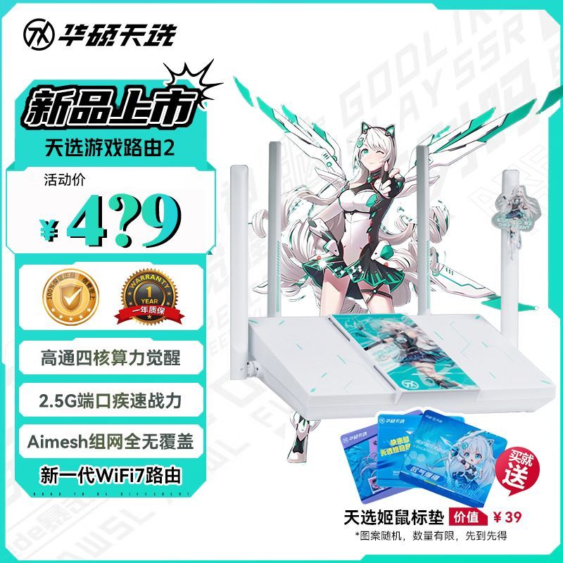 华硕ASUS天选游戏路由2全新WiFi7电竞游戏智能路由器RT-BE57震撼来袭,专为高速网络时代打造,支持最新WiFi7技术,千兆带宽畅享极速体验,信号穿墙更强覆盖更广,有效提升家庭网络稳定性,无论是大型游戏、4K视频还是多设备连接都能轻松应对,电竞级低延迟设计让游戏体验更加流畅,智能路由系统操作简便,外观炫酷科技感十足。