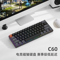 ROYAL KLUDGE RK C60磁轴键盘专为电竞游戏设计,搭载佳达隆磁白轴,触发行程可调,响应迅速灵敏,助你在无畏契约等高强度对战中快人一步。支持8K回报率,配合网页驱动实现极低延迟,操作更跟手,游戏体验大幅提升。墨纱配色沉稳大气,结构紧凑节省空间,有线单模连接稳定可靠,杜绝干扰。
