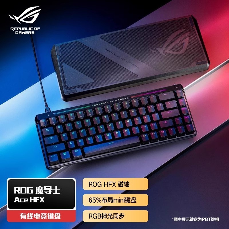 华硕ASUS ROG魔导士Ace HFX磁轴键盘PBT版,专为电竞玩家打造的高性能机械键盘,搭载HFX磁轴技术,响应极速,触发行程可自定义,带来精准操控体验。采用高品质PBT双色注塑键帽,耐磨不打油,手感细腻,搭配ROG标志性RGB幻彩灯效,炫酷外观尽显电竞风范。键盘支持热插拔设计,方便轴体更换,结构优化提升稳定性和耐用性。