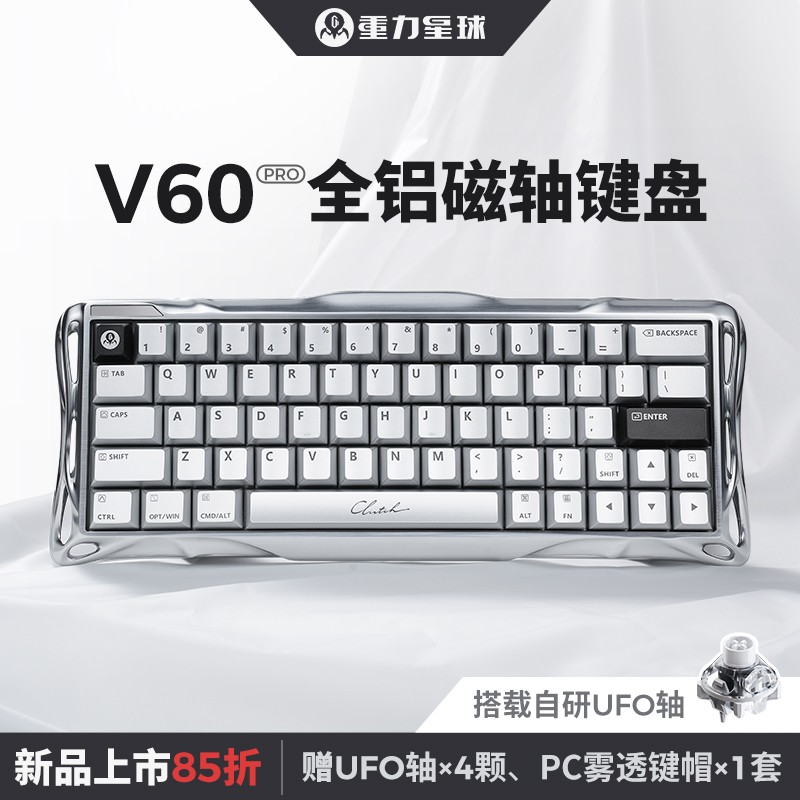 重力星球GravaStar V60 Pro是一款游戏电竞专用键盘,具备低延迟的特性,专为打瓦等游戏场景打造。它采用三角洲UFO磁轴,全铝材质设计。