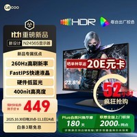 联想来酷23.8英寸电竞显示器N2456S,专为游戏玩家打造,配备260Hz超高刷新率,画面顺滑流畅,告别卡顿拖影,轻松掌控快节奏战斗;采用FastIPS面板,1ms极速响应时间,搭配HDR400高动态范围技术,提升明暗对比,细节更丰富;支持硬件级低蓝光,有效减少长时间使用带来的视觉疲劳,护眼更贴心。