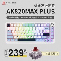 黑爵AK820MAX三模客制化机械键盘,采用Gasket结构搭配全键热插拔设计,带来更柔韧舒适的敲击手感,支持TTC金红轴V4轴体自由更换,畅享丝滑输入体验,冰河蓝配色尽显简约科技美感,RGB背光灯效绚丽多彩可自定义,8000mAh大容量电池提供超长续航,无线三模连接适配多设备,办公游戏皆宜。京东现售价239元,领取200-20优惠券,参与满200减25及满29打8.5折活动,到手价仅158.15元,性价比出众,喜欢客制化键盘的朋友不容错过。