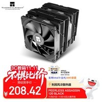利民Peerless Assassin 120 BLACK双塔风冷散热器,外观为经典黑色,采用6热管+双塔+双扇的优良构架。它运用6X6 mm AGHP逆重力热管,能有效解决立卧的问题,53片全铝鳍片X2的双塔构架,还做了避让内存切角处理,带来良好兼容性。全金属扣具搭配纳米喷涂黑漆,质感十足。