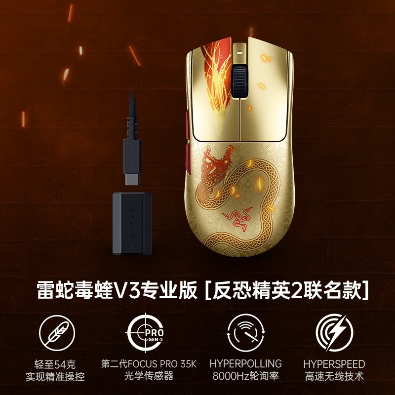 雷蛇毒蝰V3专业版Pro无线电竞游戏鼠标专为追求极致性能的玩家打造,搭载8K轮询率技术,响应速度高达125Hz,带来丝滑流畅的操作体验,助你在反恐精英CS2等高强度竞技游戏中快人一步。采用轻量化设计,重量仅约63克,长时间握持依然舒适无压,搭配升级版Focus Pro 30K传感器,精准追踪每一下细微移动。支持无线8K轮询模式,搭配专属8K接收器,实现超低延迟连接,性能媲美有线。