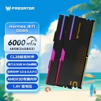 宏碁掠夺者(PREDATOR)48G(24G×2)套装 DDR5 6000频率 台式机内存条 Hermes冰刃系列 RGB灯条(C28) 石耀黑 AI电脑配件