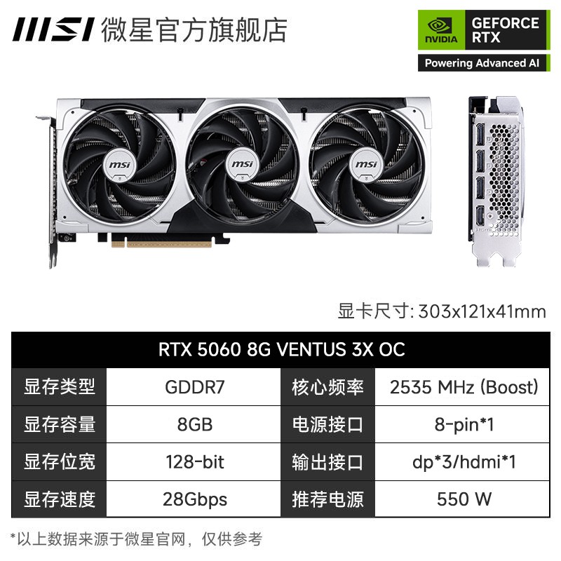 微星幻影师RTX 5060 8G 3X OC万图师电脑游戏显卡,搭载NVIDIA全新Ada Lovelace架构,基于台积电4nm工艺打造,拥有更高效的SM多单元处理器和更强的光追性能,整体游戏性能相比上代提升高达25%,光追表现更是提升2-3倍,在处理复杂光线和几何场景时效率翻倍。配合全新的DLSS 3技术,游戏帧率最高可提升4倍,让你在高画质下流畅运行各类3A大作与热门电竞游戏。显卡配备8GB GDDR6显存,支持HDMI 2.1与DP 1.4a接口,满足4K高刷显示需求,同时搭载TRI FROZR 3散热系统,采用刀锋7代风扇与镀镍铜底座,高效导热静音运行,长时间游戏也能保持稳定性能。
