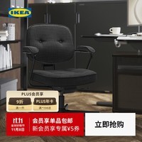 宜家 IKEA ALEFJALL 阿勒夫耶 工作椅 灰色/黑色,专为长时间办公打造,符合人体工学设计,提供出色腰部支撑,可调节座椅高度和扶手,搭配顺滑滚轮,灵活移动不伤地板,黑色与灰色经典配色,轻松融入各种家居或办公环境。