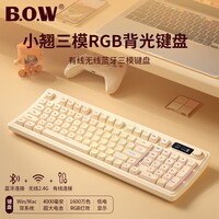 B.O.W航世K820三模键盘现震撼促销,原价129元,现活动价叠加多重优惠,参与满129减20、满29打9折及补贴10%起最高减9.61元,到手价仅86.47元起,性价比爆棚!这款键盘支持有线蓝牙无线三种连接模式,适配多设备无缝切换,办公娱乐两不误。奶茶色外观清新时尚,搭配RGB背光灯效,颜值与实用性兼具,键位布局合理,手感舒适,响应灵敏,无论是日常办公还是游戏操作都能轻松应对,是提升效率与体验的理想之选,库存有限,抓紧入手!
