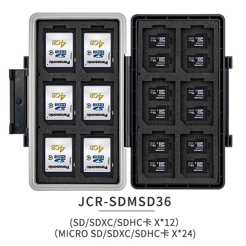 JJC相机存储卡盒是一款功能强大的收纳好物,它能收纳SD、TF、CF、XQD、M.2 SSD固态硬盘以及SWITCH NS游戏卡、CFexpress Type - A卡等。有SD12 + TF24(卡槽)的规格可选。