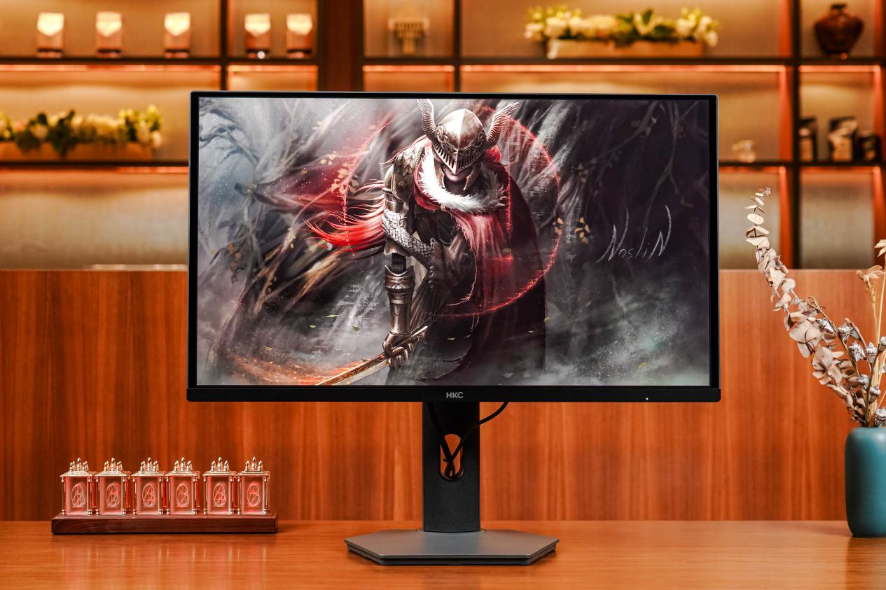 镜面背板的顶部赫然印有“HKC GAMING”字样及品牌电竞系列最新的“G”形logo,这不仅凸显了产品的电竞血统,更鲜明地强化了这款显示器专为游戏玩家打造的精准定位。