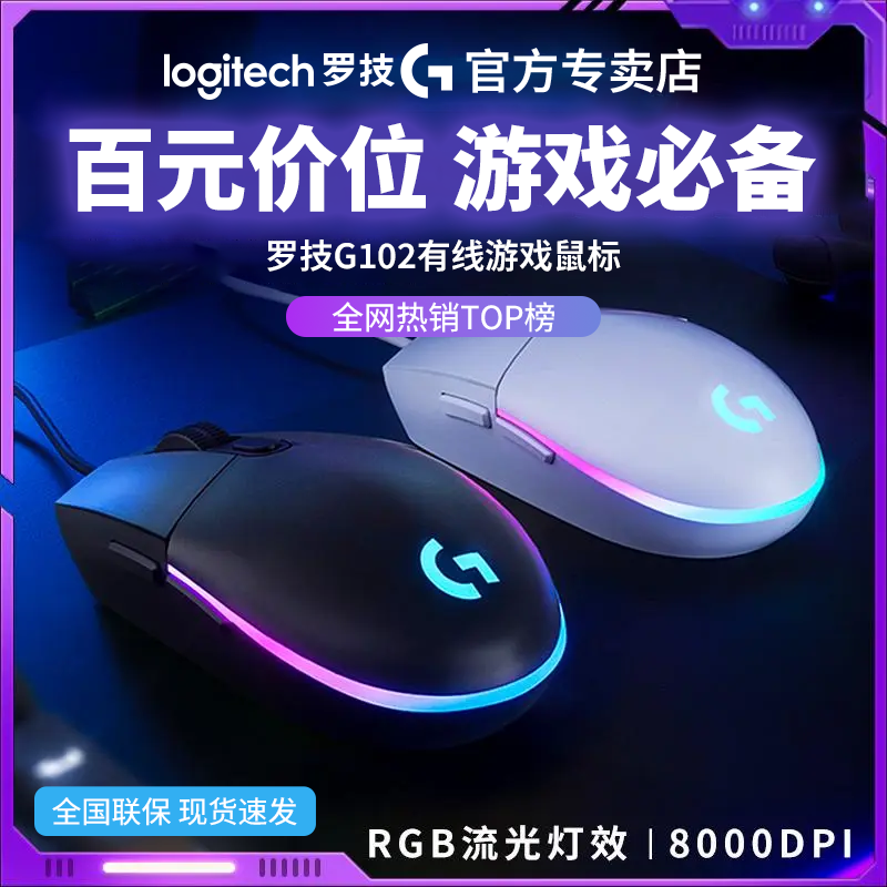 罗技G102二代有线游戏鼠标RGB,专为游戏玩家打造,搭载精准光学追踪引擎,响应迅速操作灵敏,轻松应对各类激烈对战场景;经典人体工学设计,握感舒适长时间使用不疲劳;支持自定义RGB灯效,炫酷光效随心切换,点亮你的游戏桌面。