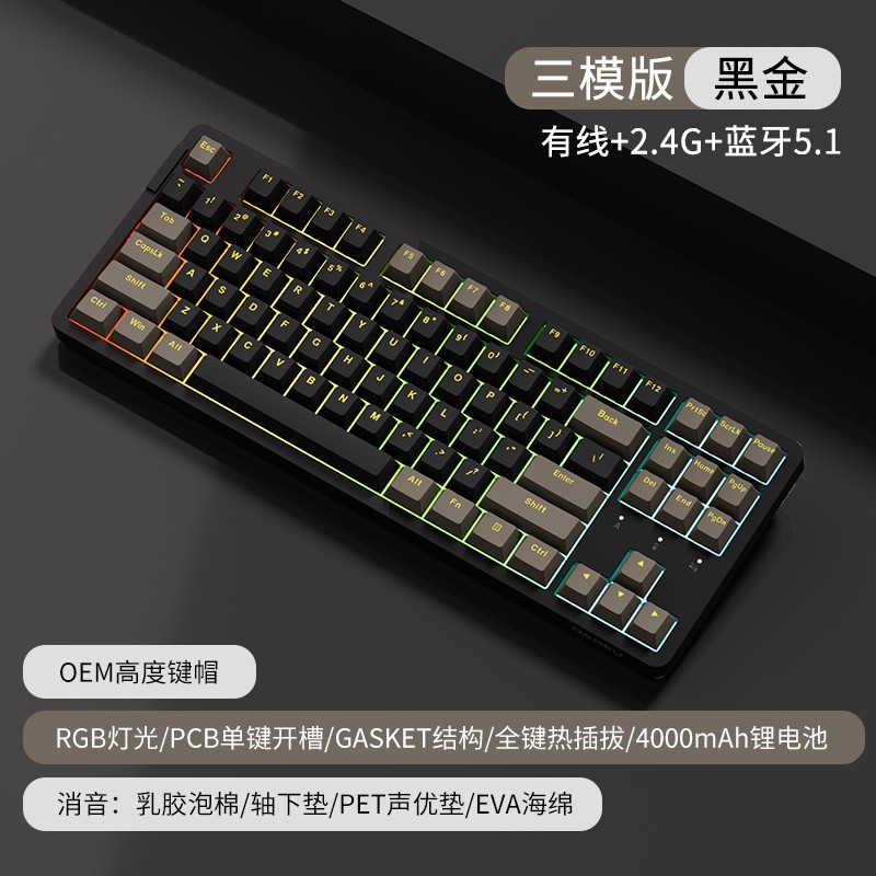 达尔优EK87pro石墨金可充电机械键盘来袭!它支持全键热插拔,还具备三模无线功能。