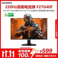 创维27英寸电竞显示器F27G40F,专为游戏爱好者打造,搭载27英寸FastIPS快速液晶屏幕,支持高达220Hz刷新率和原生200Hz高频,配合1ms极速响应时间,画面流畅无拖影,助你快人一步掌握先机。支持HDR10高动态范围技术,带来更丰富的色彩层次与明暗细节,光感屏变功能可智能调节亮度,适应不同环境光,提升观看舒适度。配备硬件低蓝光技术,有效减少有害蓝光,长时间使用也更护眼。