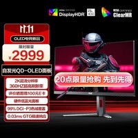 AOC Q27G4SD 26.5英寸QD-OLED显示器重磅优惠来袭!20点准时开抢,限时限量到手价仅需2999元,直降600元,堪称近期好价不容错过!这款显示器采用先进的QD-OLED面板,带来更纯净的色彩表现和更深邃的黑色还原,支持2K高清分辨率与高达360Hz的极致刷新率,无论是大型游戏还是高速动作场景都能流畅呈现,画面顺滑无拖影。同时具备出色的响应速度与广色域覆盖,助力玩家精准掌控每一个细节。外观设计简洁大气,兼具散热优化与视觉沉浸感。