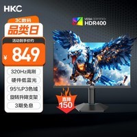 HKC猎鹰G25H3Pro电竞显示器,24.5英寸FastIPS快速液晶屏幕,支持高达320Hz刷新率,响应时间低至1ms,带来极致顺滑的游戏体验,轻松应对高速动态画面,助力玩家精准捕捉每一个细节。支持HDR400高动态范围技术,提升画面对比度与色彩表现,明暗层次更丰富。内置硬件低蓝光模式,有效减少长时间使用带来的视觉疲劳,护眼更健康。支持升降旋转支架,自由调节高度、倾斜、旋转角度,适配多种使用场景。搭载DC调光技术,减少屏幕闪烁,观看更舒适。